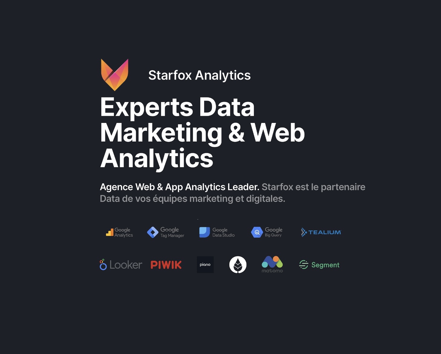 Starfox s'appuie sur des experts passionnés de Data Marketing et Web Analytics. Nous accompagnons nos clients sur des sujets tels que l'implémentation du Data Layer, la migration sur GA4, mise en conformité cookies & RGPD, GTM server-side et Facebook conversion API. Rigueur, disponibilité et proactivité sont les qualités fondamentales de l'entreprise.